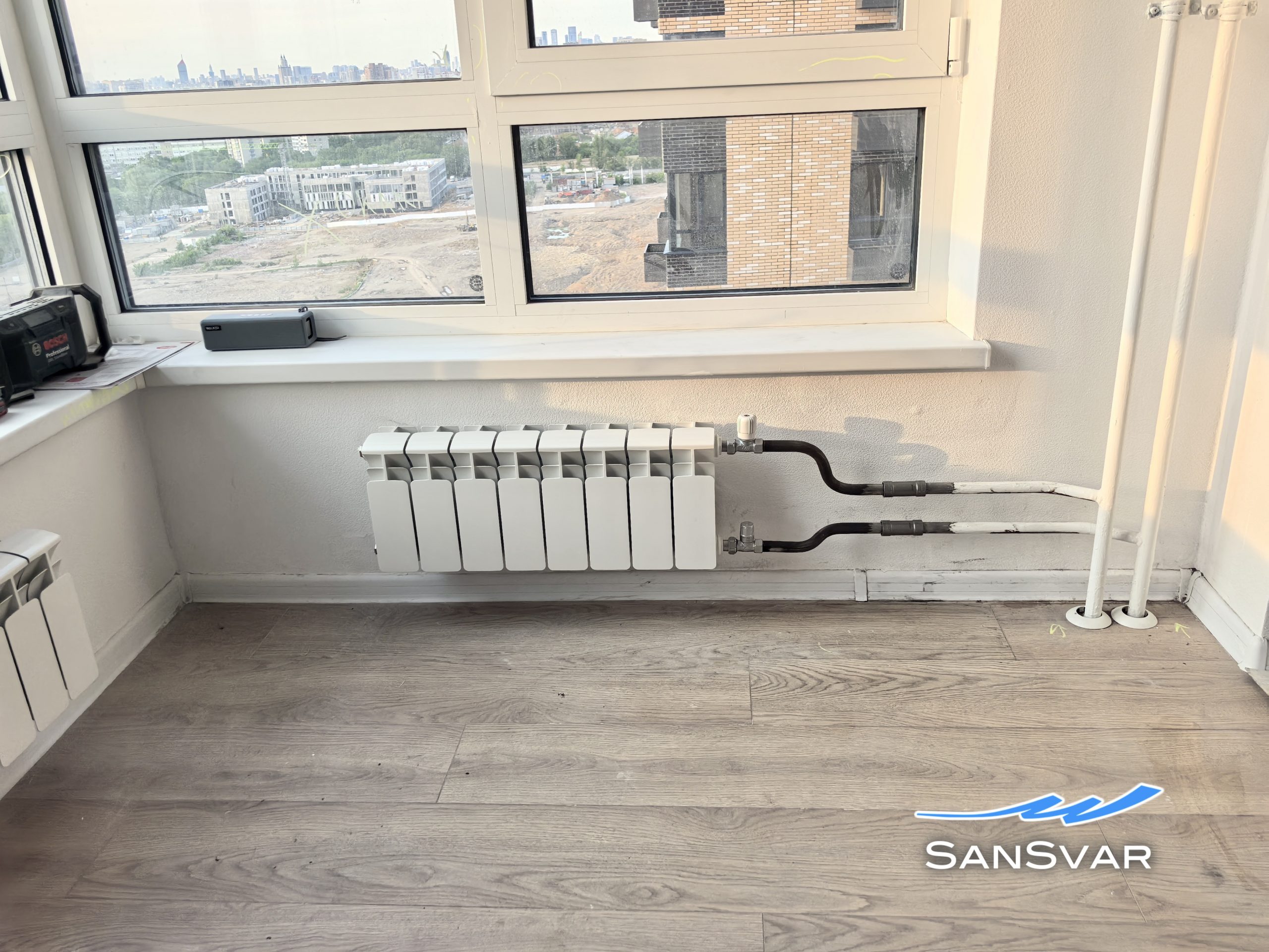 Если вы планируете самостоятельно выбирать и приобретать радиаторы, то стоит учитывать что для его подключения по технологии «заморозка труб» (без отключения стояков отопления) необходим минимальный техническое расстояние от стояков до начала нового радиатора, в ином случаи вам придётся его сместить от центра окна. Если замена радиаторов будет в отопительный сезон, то общее расстояние не меньше 80 см, в не отопительный 60 см. В эти размеры входит 35 см (минимум) от радиатора до места соединения труб + 25 — 40 см до стояков или выхода труб из коробов и стен